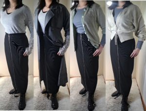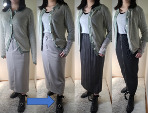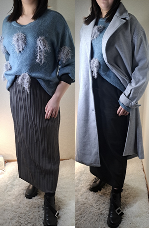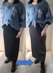 なのでセーター1つとスカートの中間色を加えます。そうしますと